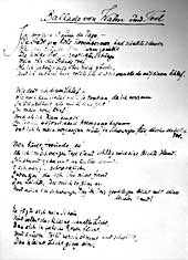 | Franz Werfel (1890-1945) Dichter & Almas Ehemann no.3 Hören Sie Franz Werfel's Stimme: Werfel rezitiert eigene Gedichte Der schöne Strahlende Elternlied Der Wanderer kniet Lächeln Atmen Schreiten Als Alma im November 1917 den jungen Lyriker Franz Werfel kennenlernte, mißfiel ihr der «fette o-beinige Jude mit seinen wulstigen Lippen» (OTon Alma) keineswegs, es entbrannte eine leidenschaftliche Liaison zwischen ihnen. Der um elf Jahre jüngere Werfel sah in Alma seine Erretterin, seine Göttin, die er anbeten durfte. So oft es ging besuchte ihn Alma in seinem Zimmer im Hotel Bristol, und nachdem sie sich geliebt hatten, schickte sie ihn unerbittlich zurück an den Schreibtisch. Anfang 1918 wurde Alma, damals verehelichte Gropius, schwanger, das Baby kam frühzeitig zur Welt, da Werfel seine unersättliche Gier nicht zurückhalten konnte und es seiner Geliebten in einem wahren Blutbad aus dem Leib stieß. Baby Martin war zehn Monate später tot, eine Folge von Werfels «verkommenem Samen», wie Alma es ausdrückte. Trotzdem sorgte sie für ihren «Franzl» ein Leben lang, er war «ein winziger Vogel in ihrer Hand», der ihren Schutz brauchte. Werfel verdankt Almas befruchtendem Ehrgeiz seine Weltkarriere, die im Roman «Die 40 Tage des Musa Dagh» und den von Hollywood verfilmten Werken «Das Lied der Bernadette» und «Jakobowsky und der Oberst» gipfelte. |