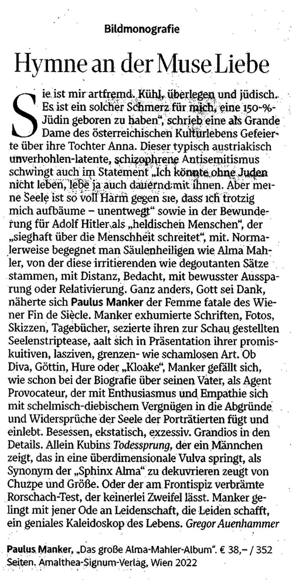 »Das große Alma Mahler Album ist ein Wunderwerk des Schreckens. Manker hat ein hinreißendes Porträt verfasst.« (Der SPIEGEL)