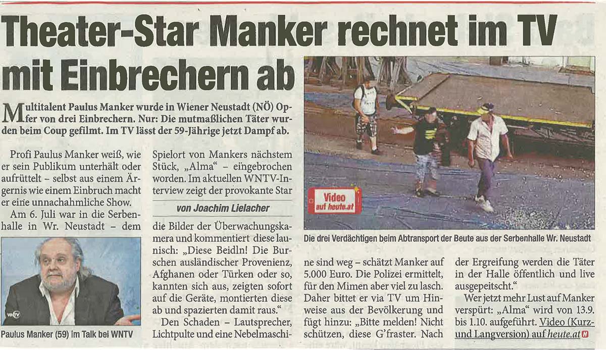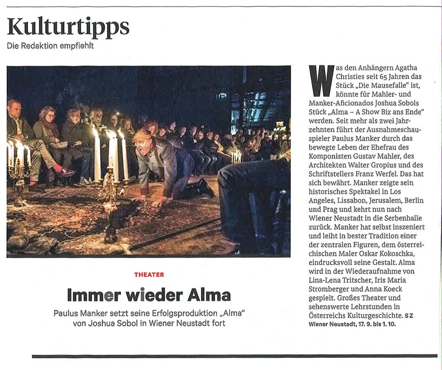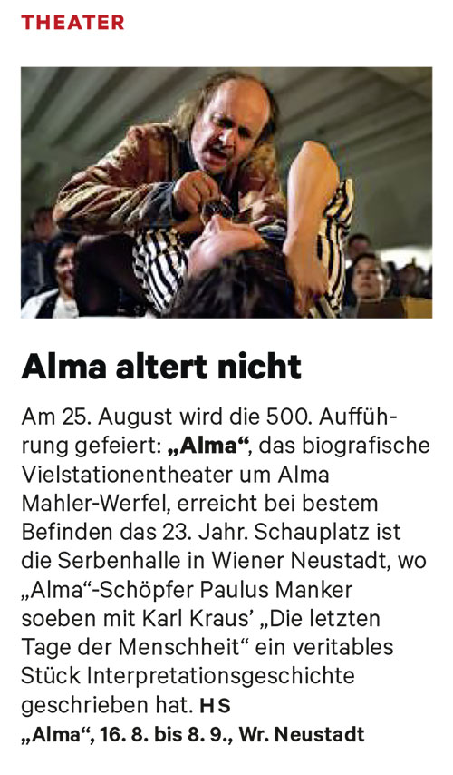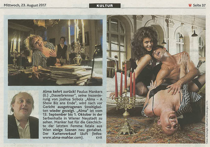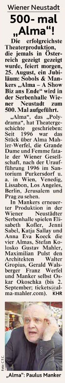 | Pressestimmen - Österreich Presse 2018 Wiener, 23. Jänner 2018 Ö-Ticket, 25. Jänner 2018 City Magazin, April 2018 News, 10. August 2018 Standard, 17. August 2018 Kronenzeitung, 24. August 2018 Österreich, 24. August 2018 Kurier, 27. August 2018 Österreich, 27. August 2018 Kurier Newsletter, 27. August 2018 Kronenzeitung, 2. September 2018 Presse 2017 Kurier, 16. August 2017 Heute, 22. August 2017 Krone, 23. August 2017 News, 12. September 2017 Kurier, 13. September 2017 Heute, 13. September 2017 Presse 2015 Kurier, 1. Februar 2015 Kurier, 4. Februar 2015 Presse, 3. März 2015 Leben in Wien, März 2015 Zur Zeit 27. März 2015 NÖN, April 2015 2700 City Magazin, April 2015 Bühne, Mai 2015 Format, Mai 2015 Woman, Mai 2015 Pressedienat NÖ, 5. Mai 2015 Kurier, 22. Mai 2015 Österreich, 22. Mai 2015 News, Mai 2015 Österreich, 24. Mai 2015 Krone, 26. Mai 2015 Der Standard, 28. Mai 2015 Kurier, 29. Mai 2015 OE24, 29. Mai 2015 Kurier, 31. Mai 2015 Krone, 15. Juli 2015 Presse 2014 NÖN, 16. Juni 2014 Kurier Club, 28. Juni 2014 OE24, 28. Juni 2014 NÖN, Juli 2014 Wr. Neustadt Aktuell, Juli 2014 WN TV, Juli 2014 City Magazin 2700, Juli 2014 Kronen Zeitung, 2. Juli 2014 Kurier, 15. Juli 2014 Kurier Online, 15. Juli 2014 Übers weite Land, August 2014 NÖN, August 2014 Der Standard, 4. August 2014 Kleine Zeitung, 9. August 2014 Kurier Online, 10. August 2014 Kurier, 10. August 2014 Die Presse Online, 10. August 2014 Die Presse, 10. August 2014 Tiroler Tageszeitung, 13. August 2014 ORF NÖ, 15. August 2014 Die Presse, 17. August 2014 Der Standard, 18. August 2014 WN TV, 19. August 2014 Heute Online, 20. August 2014 Heute, 20. August 2014 NÖN, 20. August 2014 Klingers Kulturpavillon, 23. August 2014 ORF TV, 25. August 2014 Österreich, 28. August 2014 Zur Zeit, 19. September 2014 Morgen, September, 2014 Botin aus der Buckligen Welt, Okt. 2014 Presse 2013 Kurier, 4. April 2013 2012 Ö-Ticket, Juni 2012 Ö-Ticket Highlights, Juni 2012 OE24, 23. Juni 2012 ORF, 29. Juni 2012 Kurier, 29. Juni 2012 Kurier, 29. Juni 2012 Kurier Bildergalerie, 29. Juni 2012 Die Presse, 29. Juni 2012 OE24, 30. Juni 2012 Kurier, 4. Juli 2012 Bühne, Juli 2012 OE24, 19. Juli 2012 Die Presse, 25. Juli 2012 Der Standard, 27. Juli 2012 Der Standard, 31. Juli 2012 Der Standard, 4. August 2012 Der Standard, 5. August 2012 Krone, 28. November 2012 ORF, 25. Dezember 2012 2011 Wien International, Mai 2011 Der neue Merker, Mai 2011 Falter, Mai 2011 Quartalnews AWC Prag, Mai 2011 ORF, 1. Mai 2011 Live PR, 2. Mai 2011 OE24, 2. Mai 2011 Die Presse, 5. Mai 2011 Heute, 10. Mai 2011 Kurier, 15. Mai 2011 Kurier, 17. Mai 2011 Kurier, 18. Mai 2011 Wirtschaftsblatt, 18. Mai 2011 Die Zeit, 19. Mai 2011 Prager Zeitung, 25. Mai 2011 Öst. Botschaft Prag, Juni 2011 55 Plus Magazin, 6. Juni 2011 OE24, 9. Juni 2011 Die Zeit, 9. Juni 2011 Der Standard, 11. Juni 2011 Radio Praha, 11. Juni 2011 Kurier, 12. Juni 2011 ORF Seitenblicke, 13. Juni 2011 OE24, 14. Juni 2011 Krone, 15. Juni 2011 Prager Zeitung, 16. Juni 2011 OE24, 21. Juni 2011 Kurier, 24. Juni 2011 2010 Ticket, Juni 2010 ORF, 22. Juni 2010 Bühne, Juli 2010 Kleine Zeitung, 2. Juli 2010 Ö1 Kulturjournal, 2. Juli 2010 Ö1 Kulturjournal Audio, 2. Juli 2010 Krone, 7. Juli 2010 Österreich, 7. Juli 2010 ORF, 7. Juli 2010 ORF, 8. Juli 2010 Heute, 9. Juli 2010 Krone, 9. Juli 2010 Österreich, 9. Juli 2010 Krone, 9. Juli 2010 APA, 22. Juli 2010 Kurier, 15. August 2010 Kurier, 24. August 2010 ORF, 27. Oktober 2010 Die Presse, 27. Oktober 2010 OE24, 28. Oktober 2010 ORF, 8. November 2010 Die Presse, 9. November 2010 Der Standard, 9. November 2010 OE24, 9. November 2010 Kurier, 9. November 2010 Kurier Online, 9. November 2010 Salzburger Nachrichten, 9. Nov. 2010 News, 9. November 2010 News – Party, 9. November 2010 OE24, 9. November 2010 Kurier, 10. November 2010 Die Presse, 10. November 2010 Kurier Society, 10. November 2010 Wiener Zeitung, 10. November 2010 2009 Die Presse, April '09 Kurier, 18. Mai '09 OE24, 20. Mai '09 Krone, 21. Mai '09 Seitenblicke Magazin, 28. Mai '09 Kurier, 6. Juni '09 Austrian Times, 8. Juni '09 VOR Magazin, Juli '09 Heute, 2. Juli '09 Neue Welt, Juni/Juli '09 Woman, Juli '09 Krone, 13. Juli '09 Heute, 5. August '09 Kurier, 9. August '09 Österreich, 28. August 2009 APA, 3. Sept. 2009 Krone, Sept. 2009 OE24, 2. Okt. 2009 Österreich, 2. Okt. 2009 Die Presse, 2. Okt. 2009 ZIB, 2. Okt. 2009 APA, 2. Okt. 2009 Kurier, 3. Okt. 2009 APA, 4. Okt. 2009 Der Standard, 5. Okt. 2009 ORF, 5. Okt. 2009 Österreich, 5. Okt. 2009 Kurier, 11. Okt. 2009 Österreich, 14. Okt. 2009 Bühne, Nov. 2009 Wiener, Dez. 2009 2008 IKG Online, Mai '08 Österreich, 27. Mai '08 Österreich, 28. Mai '08 Ticket, Juni '08 Österreich, 12. Juni '08 Madonna, 14. Juni '08 Profil, KW 26, Juni '08 Standard, 1. Juli '08 Heute, 2. Juli '08 Wien.at, 3. Juli '08 Globus, 4. Juli '08 Österreich, 6. Juli '08 Kurier, 7. Juli '08 Falter, 9. Juli '08 ORF Magazin, 12. Juli '08 OE24.at, 16. Juli '08 Ö1 Mittagsjournal, 17. Juli '08 Kurier, 18. Juli '08 Standard, 18. Juli '08 Heute, 18. Juli '08 ORF.at, 18. Juli '08 Die Presse, 18. Juli '08 Kurier, 19. Juli '08 Österreich 22. Juli '08 Musikmarkt Live, 25. Juli '08 Die Presse, 25. Juli '08 Freizeit, 26. Juli '08 Austrian Times, 28. Juli '08 Heute, 6. August '08 Madonna. August '08 Profil, 1. Sept. '08 OE24.at, 1. Sept. '08 Wien Web, 1. Sept. '08 2007 Presse 2007 komplett (1 PDF) NÖN, 31. Mai '07 News, Juni '07 Ticket Editorial, Juni '07 Ticket, Juni '07 Now, Juni '07 Österreich, 3. Juni '07 Österreich, 4. Juni '07 Kurier, 5. Juni '07 NÖN, 8. Juni '07 Kurier, 19. Juni '07 Kurier NÖ, 19. Juni '07 ORF Presse, 26. Juni '07 Krone, 28. Juni '07 Freizeit, 30. Juni '07 Live, Juli '07 Wiener Zeitung, 17. Juli '07 Österreich, 18. Juli '07 Österreich, 19. Juli '07 Kurier, 22. Juli '07 Krone, 22. Juli '07 Österreich, 24. Juli '07 Seitenblicke Magazin, 27. Juli '07 Krone Bunt, 29. Juli '07 VOR Magazin, August '07 Freizeit, 4. August '07 Kurier, 4. August '07 Kurier, 5. Augu
