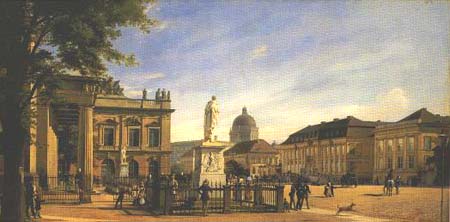 1848 View at the Crown Prince's Palace (right) and the Royal Castle as seen from the "Neuen Wache" (Oil from Johann Philipp Eduard Gaertner)